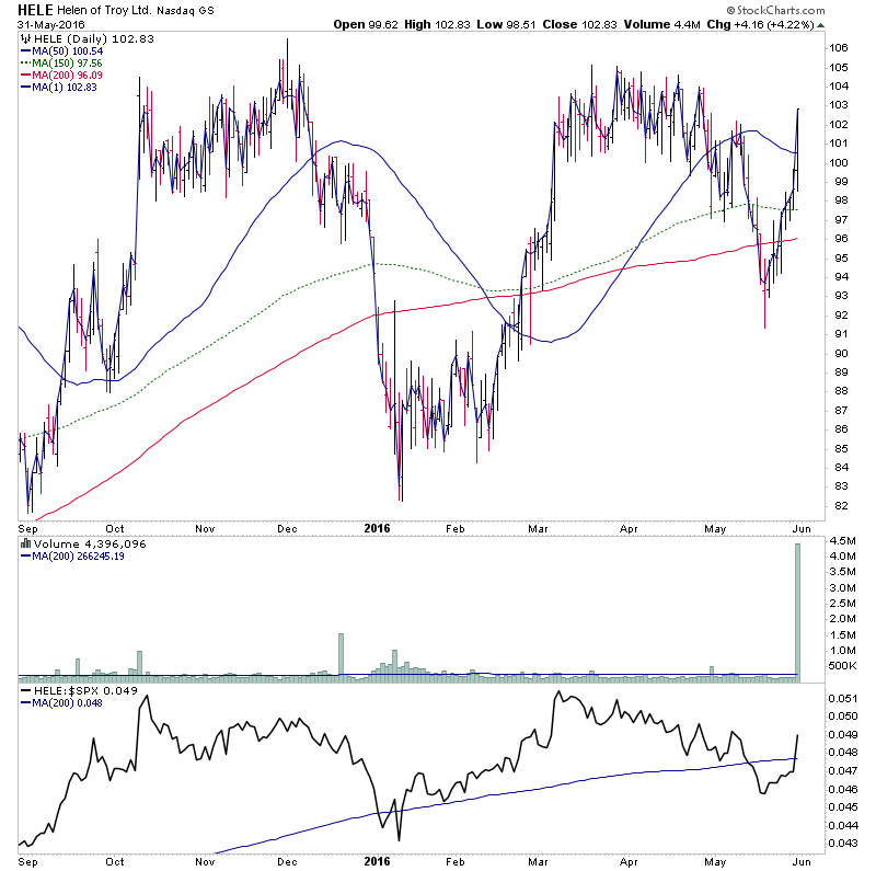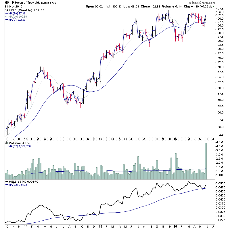 HELE - potential for a Stage 2 continuation attempt with 3.3x average weekly volume already today. Huge volume for this stock.