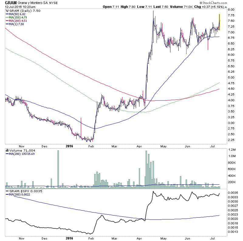I highlighted REN on Friday, and it's up around 30% today currently to make the Stage 2A breakout attempt, and two others attempting to make their own Stage 2A breakouts are NAK and CRNT. All three have already done more 3x their average daily volume today since the open two hours ago, and REN has already surpased more than 2x it's average weekly volume in just two hours, and NAK has done more 4x it's average weekly volume. So huge relative volume moves.
