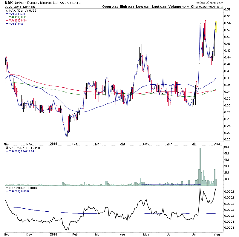 RE: US Stocks - Watchlist and DiscussionNAK - I highlighted this one earlier in the month here: http://stageanalysis.net/forum/showthrea...4#pid10324 on it's first Stage 2A breakout attempt. But it didn't complete the breakout, after a weak close that week and is now trying again on more than 4x average weekly volume.