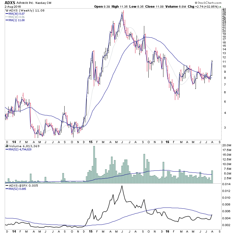 Fate does not always let you fix the tuition fee. She delivers the educational wallop and presents her own bill - Reminiscences of a Stock Operator. RE: US Stocks - Watchlist and Discussionhello Isa, I did a bit of investigation into this list. Most of them run into young or old resistence. Definitely on my buy list for today is XTLY. Will not be surprised if it will hit 19 dollar after a while. AMRN i wait for retracement. RE: US Stocks - Watchlist and Discussion(2016-08-03, 07:56 AM)odlareg Wrote: hello Isa, I did a bit of investigation into this list. Most of them run into young or old resistence. Definitely on my buy list for today is XTLY. Will not be surprised if it will hit 19 dollar after a while. AMRN i wait for retracement. Yes, quite a few have resistance still, obviously especially the Stage 1 stocks which will aways still be under long term resistance. So when I post stocks on the watchlist, I'm not suggesting that they are at a buy point unless I specially say, but simply they are shaping up and could be ones to watch. XTLY did go through a buy point yesterday, but moved strongly higher, and so you need to be aware that it's already 7% above that level, and so a hard one to get into now as a trader stop would go under 11.5 imo, which is -20%, and hence you'd need to be looking for a 60%+ move for the 3 to 1 reward to risk ratio the trader method looks for. Here's the more detailed charts of XTLY.