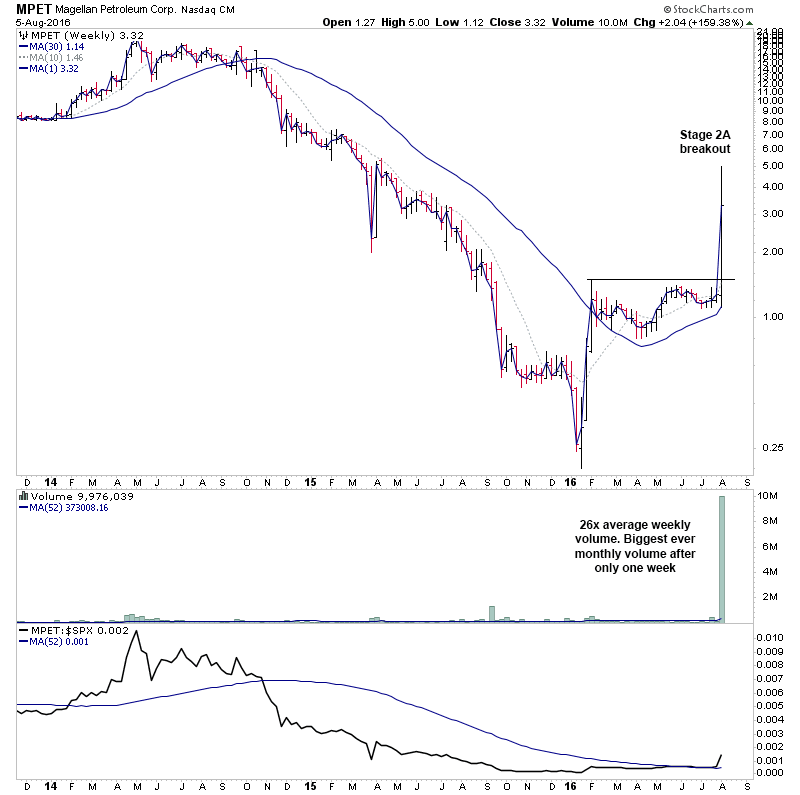 (2016-08-06, 12:28 AM)isatrader Wrote: The energy sector is coming back to life again recently, after the monster multi 100%+ short covering rallies at the beginning of the year for a lot of stocks in the sector, ending their multi year Stage 4 declines. A large number then began to form constructive Stage 1 ranges, and we are now beginning to see a number of Stage 2A breakouts, and on heavy volume in some cases. The Exploration & Production subsector has seen a number of these heavy volume breakouts of which I've been highlighting, and there could be more, as money seems to be flowing into energy imo. So is definitely an area to watch if you are using Weinstein's "Forest for the Trees" rules imo. As it is a strengthening sector with multiple stocks in Stages 1 and early in Stage 2.