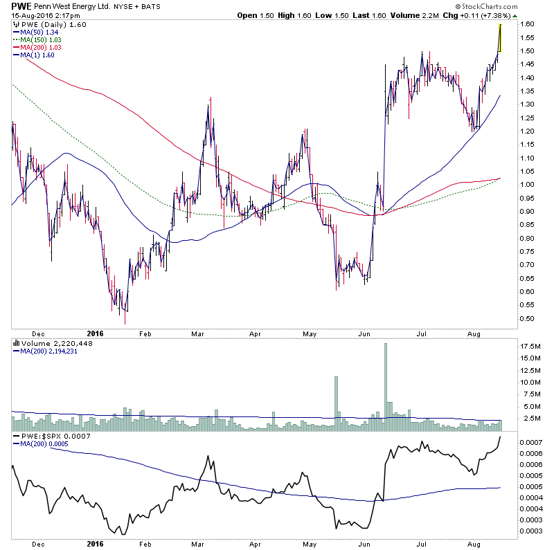 PWE - Highlighted over a week ago in Stage 1B. it's today attempting to make a Stage2A breakout