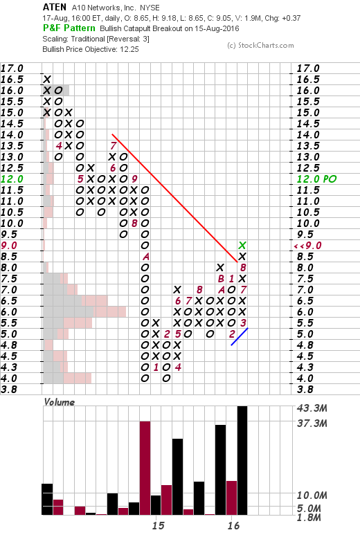 ATEN - Stage 2A breakout attempt with 1.88x average weekly volume so far this week. So should reach the 2x volume requirement by the end of the week.