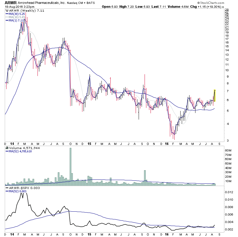 ARWR - Stage 2A breakout attempt with strong relative volume today