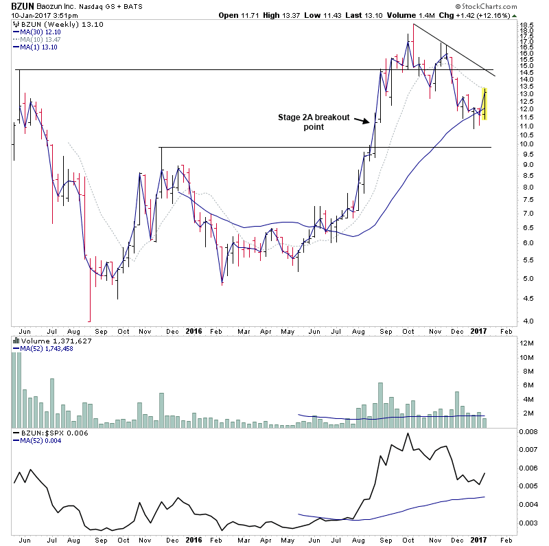 (2017-01-10, 12:41 AM)isatrader Wrote: How I was judging it was on the 3 month closing price made on Friday at 9.30, as the October high was 9.28 according to the stockcharts chart. So the reason I chose to ignore the September high and daily closing high, was that it was blow off move after a long Stage 2 run and actually had a strong down week on that week. So I believe the the last three month of tops, of which there were five were more significant for the initial continuation breakout level, and close above those five tops was the breakout level imo.