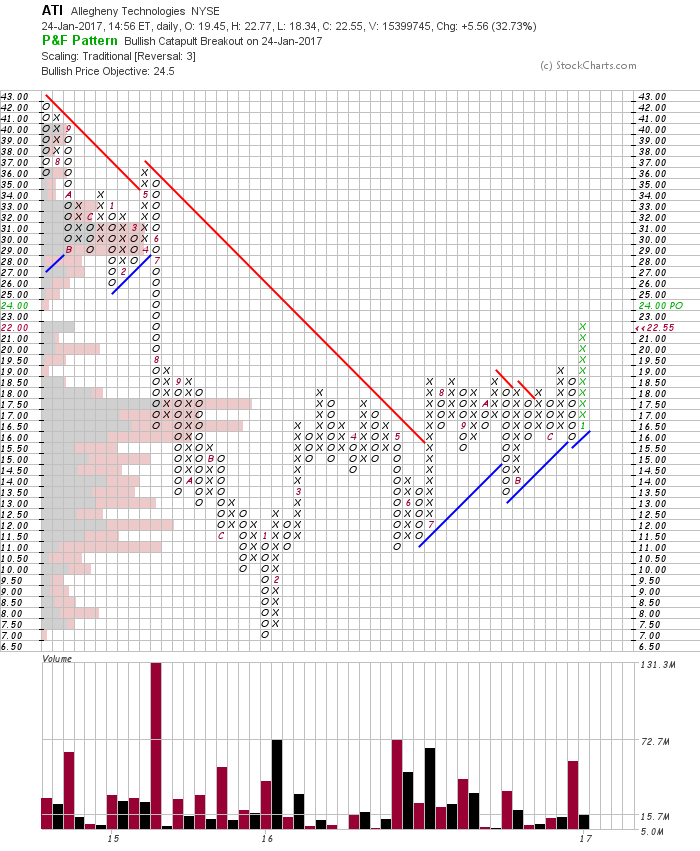Fate does not always let you fix the tuition fee. She delivers the educational wallop and presents her own bill - Reminiscences of a Stock Operator. RE: US Stocks - Watchlist and Discussion(2017-01-24, 09:00 PM)isatrader Wrote: ATI - A new Stage 2A breakout attempt with strong relative volume from one year base. This follows a failed breakout attempt in early December that didn't have any volume. I'm wondering... How do you enter in position in such a case ? A strong breakout already happened, with strong volumes. Chances are that a pullback will not come back to the breakout level. So: do you buy a such stock even after it already raised a lot (like: tomorrow ?), or will you wait for a pullback ? RE: US Stocks - Watchlist and Discussion