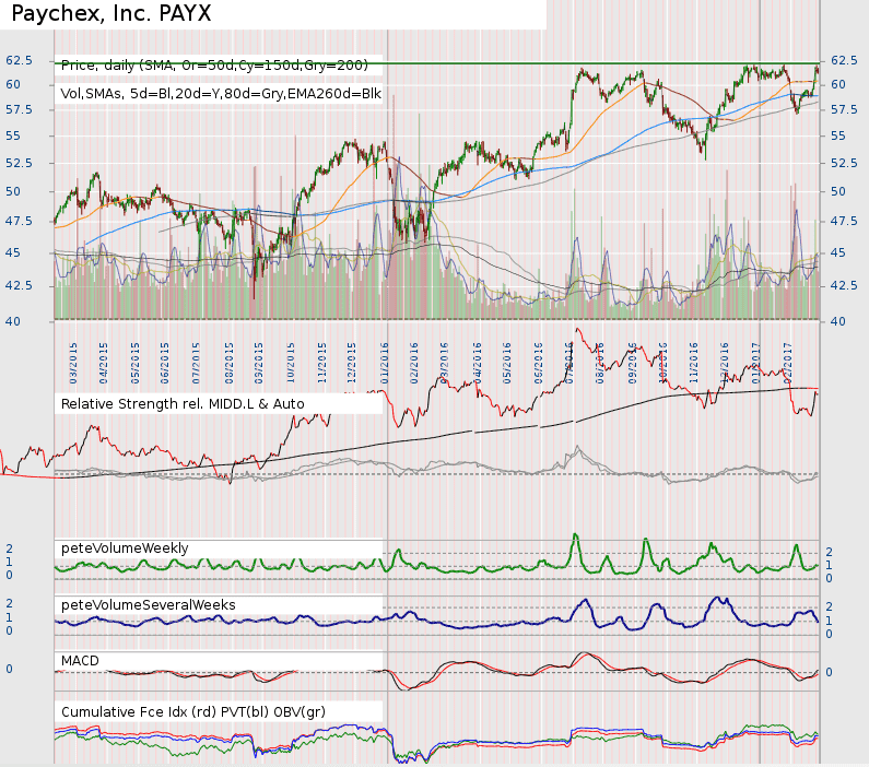 Some breakouts that are occurring at present, MIDD, PAYX & UBMF. The charts below do not have today's data. Although some are tempting I'm not seeing a good enough volume signal: