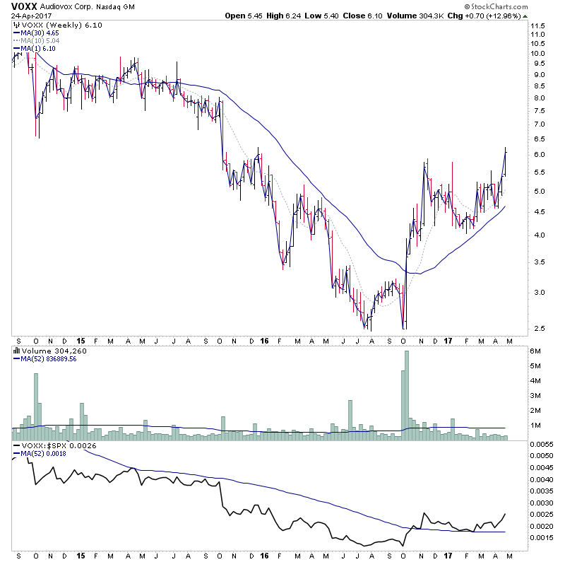I'm not sure I agree that this one is going to collapse into a Stage 4 phase, as this weeks close only puts it into early Stage 3A imo, and there are still a number of factors supporting it. For example the still rising 30 week simple MA, it's still a fair way above support, the relative performance versus the S&P 500 is still above it's flattening zero line. And on the daily chart it's still above a rising 200 day MA, which is often a major buying point for institutional buyers, and hence a source of support. And on the point and figure chart it has yet to break the major up trend line, although it's close to it. And the S&P 400 Mid Caps Index that it's part of is still in Stage 2, although in a pullback phase. Plus it's relative strength in the S&P 400 as measured by stockcharts SCTR(Mid) calculation is 93.7/100, and hence one of strongest stocks in the index.