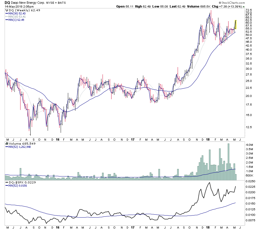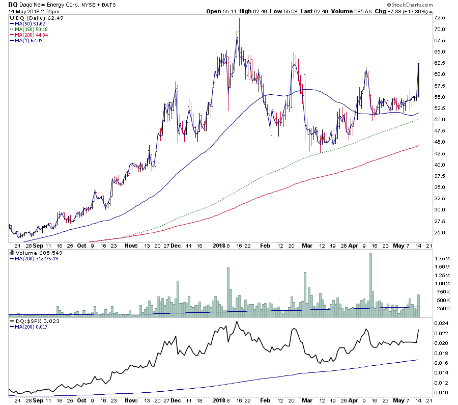 DQ popped up on my intraday scans attempting to move back into Stage 2 after 5 months of consolidation