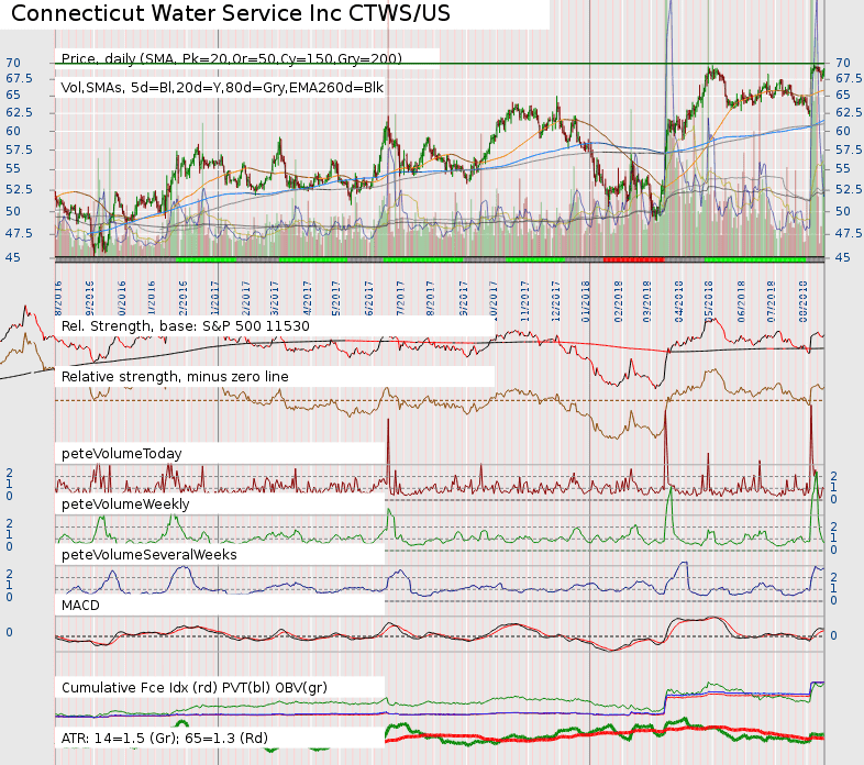 Fate does not always let you fix the tuition fee. She delivers the educational wallop and presents her own bill - Reminiscences of a Stock Operator. RE: US Stocks - Watchlist and Discussion(2018-08-21, 08:18 AM)isatrader Wrote: ... Another reason for me, for dual listed shares, to go for the US ones, is that it would cost me more to buy and sell Canadian stocks. This might vary from broker to broker, I'm not sure. RE: US Stocks - Watchlist and Discussion(2018-08-21, 08:18 AM)isatrader Wrote: Cronos is dual listed in the US and Canada, so unless you are in Canada, I'd personally look more at the US listed CRON, as it's got much greater volume than the Canadian listing version of the stock and is already close to the 2x volume requirement from just yesterdays trade, so can be fairly confident that it will reach the requirement.That's the only reason I'm looking at the Canadian version as I'm from Canada, it's just easier for me to practice trading without worrying about the exchange rate. (2018-08-21, 08:18 AM)isatrader Wrote: The ideal trader buy pattern is different to this, so you need to judge this one on other factors if you are considering it. The main one imo is always risk. Where would you put your trader stop loss, and then work out the rest from there whether it's tradeable or not for you.Looking at the base it does seem like the stop loss would be quite far from the breakout point (~32%) 2x 52-week ATR is closer at 6.56, but still around 21%, but not around any support. It does seem like many stage 2 I've looked at has far away stop loss, is there any way to remedy this other than taking a smaller position size? |