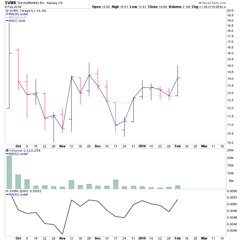 For the watchlist from Fridays scans - ARWR, DHX, EGAN, EXPE, EYEN, FLDM, FSCT, KNT.V, KTOS, NRTH.V, SBGL, WN.TO, SVMK, WRTC, DOMO
