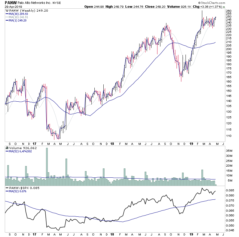 For the watchlist from Mondays scans - ACB, CGC, DAVA, GDI, OGI.V, PTN, RUBI, PANW, YEXT, ZYME
