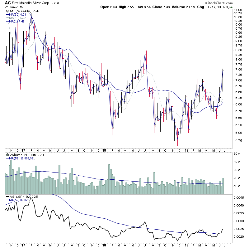 I did a scan of the US and Canadian gold mining sectors with a price greater than 0.5 and excluding the over the counter markets. Of the 174 results, I've whittled it down to following in terms of stocks that look interesting from a Stage Analysis perspective imo. I'm not saying any are a buy or not right now, as not many meet any sort of risk parameters that I follow, so I'll leave it to you to do your own due diligence. So it's just that these are showing the best characteristics of the all the gold and silver charts that I've looked over tonight.