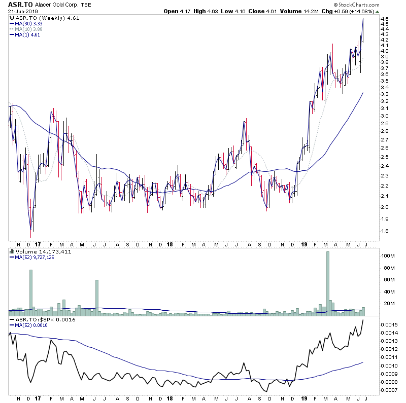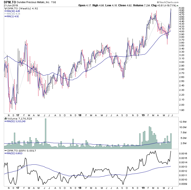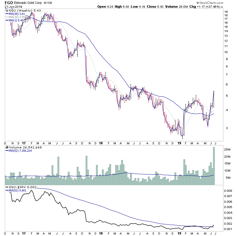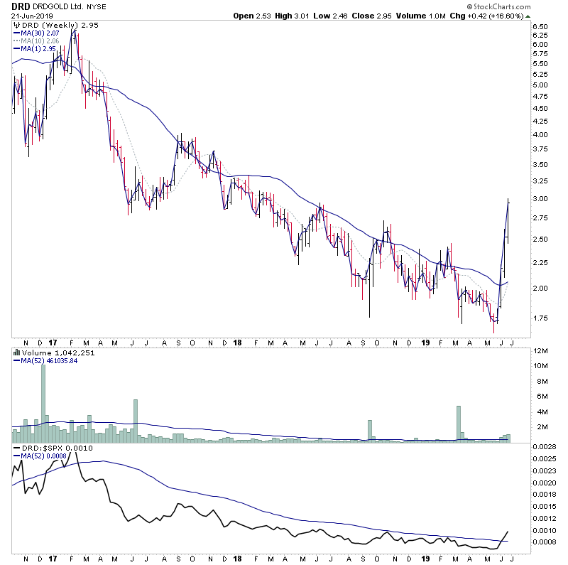 Yep, it was a confirmed Stage 2A breakout for spot gold this week, and a number of the miners have been showing up in the daily watchlist scans for the last few weeks with volume. So use the forest to the trees approach, and delve into the gold miners stocks to find the best looking charts for potential trades in the sector.