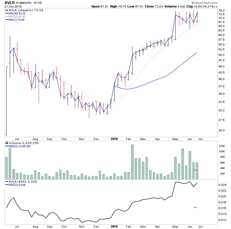 Minus the gold stocks, here's the watchlist from the normal weekend scans - AIN, AVLR, BOLD, CARA, CELG, CGEN, CVNA, CVRS, D, DBX, FNKO, KDP, MTLS, NJR, OMCL, PINS, RPD, TDY, TUFN, ZYME