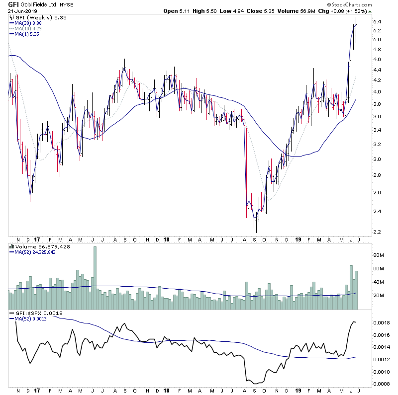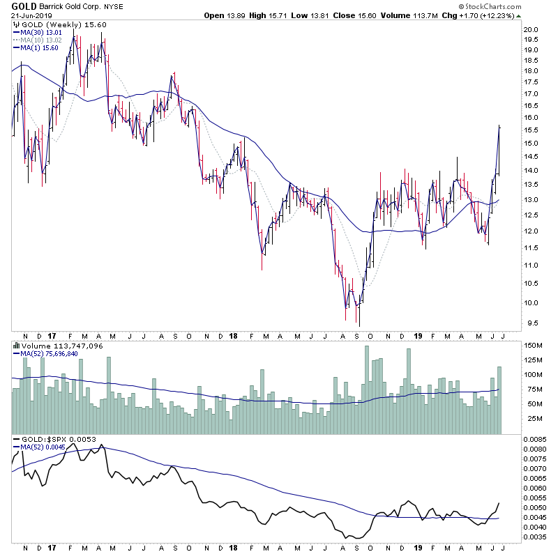 Yep, it was a confirmed Stage 2A breakout for spot gold this week, and a number of the miners have been showing up in the daily watchlist scans for the last few weeks with volume. So use the forest to the trees approach, and delve into the gold miners stocks to find the best looking charts for potential trades in the sector.