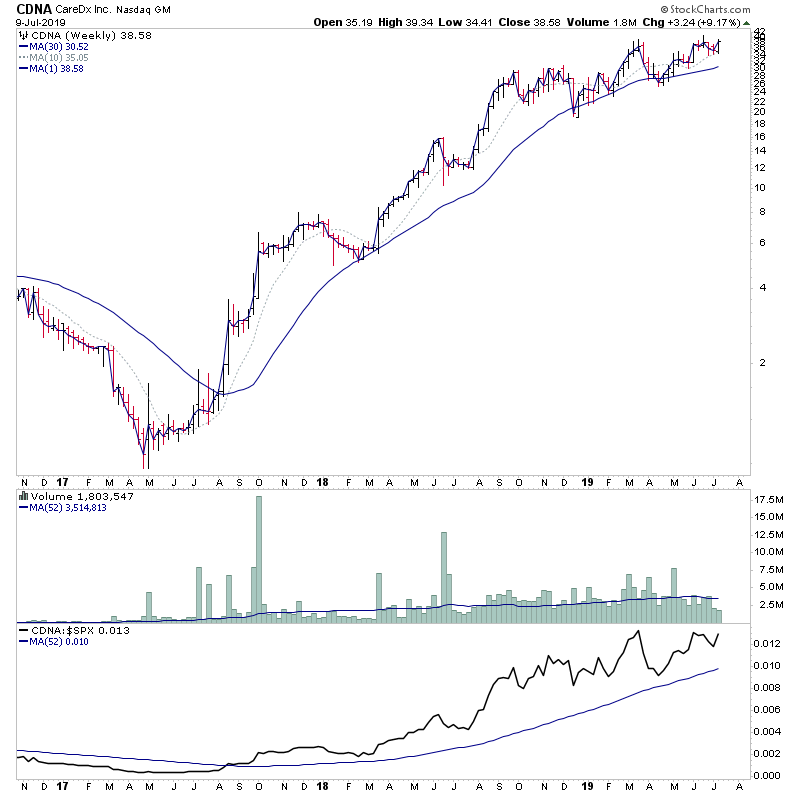 SQ - testing the 2019 weekly closing high again with good daily volume, after making a higher low in May.