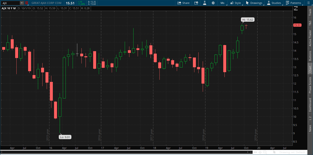 (2019-10-02, 11:49 PM)gbarbs Wrote: Haven't posted in a while.  Here's a couple that I am watching.  I traded in and out of RADA recently and waiting for another entry point.  Just got into AJX the other day - good to see it hold up with the market down today.  And volume was up at the same time.  Not a long history but its at an all time high with no resistance above.
