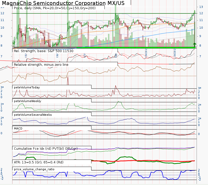 Lots breaking out right now from my watchlist but most on poor volume.  MX, which I have just bought a position in, is the exception: