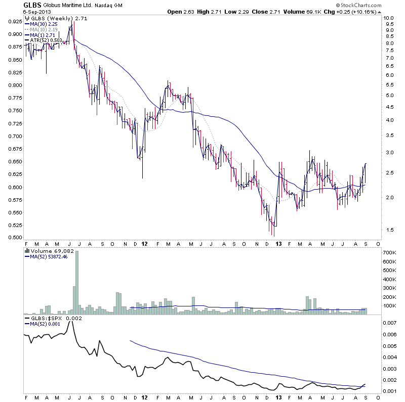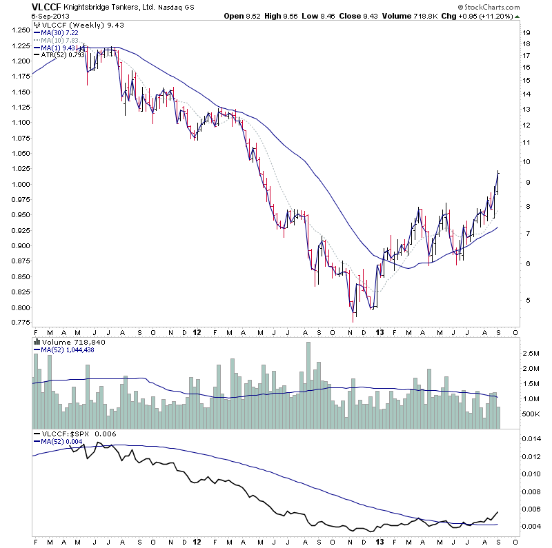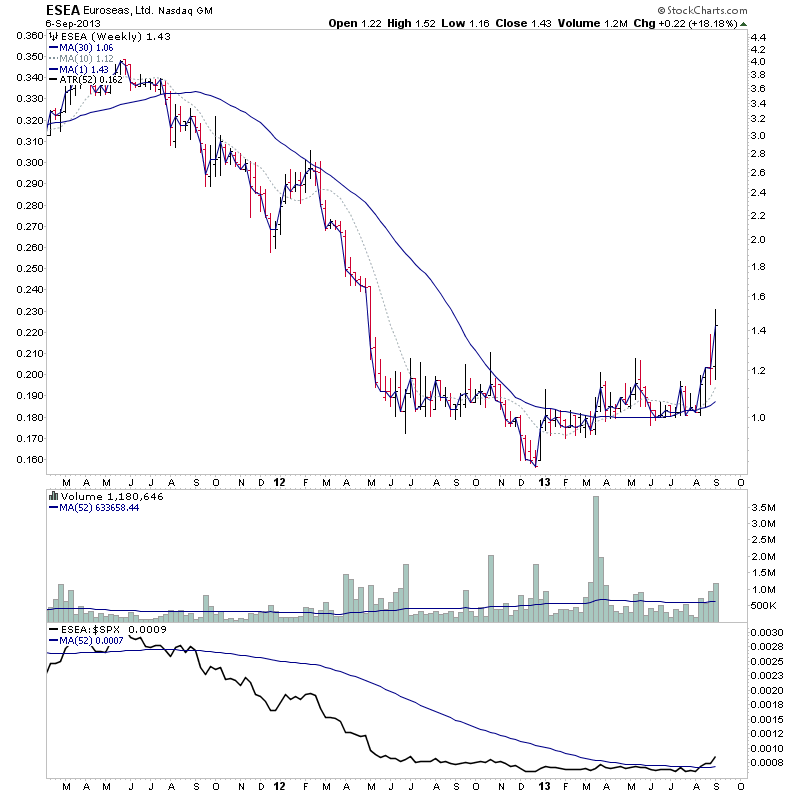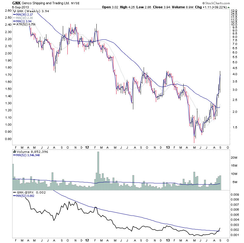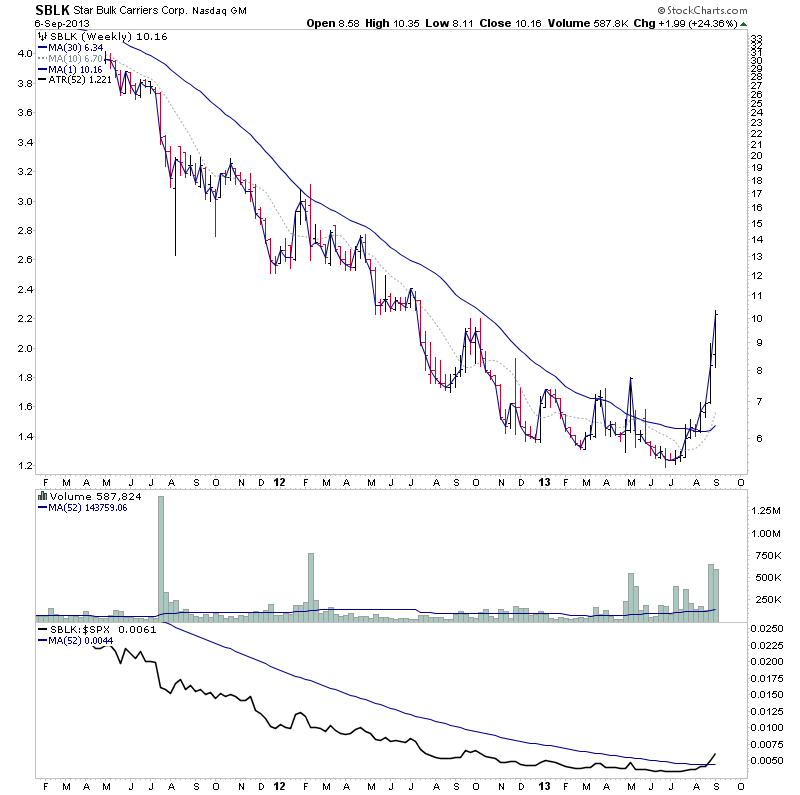 (2013-09-07, 10:01 PM)theory6453 Wrote: I went hunting for some quality Stage 1 or 2 setups today and landed in the Marine Transportation group which appears to have some life in it. I had recently bought BALT @ $4.74 so I knew that the Industrials sector was at least in a 2B and the Marine Transport group looked to be in a solid Stage 2.