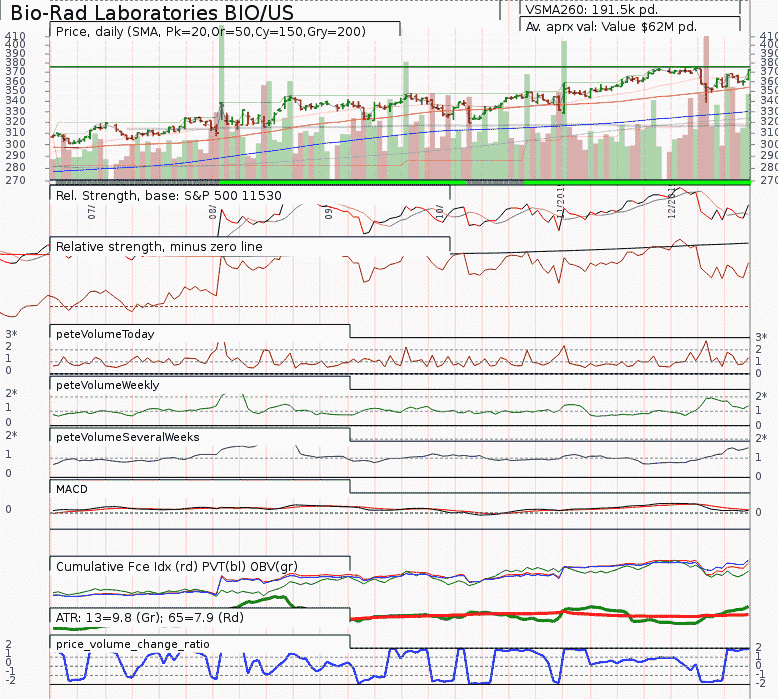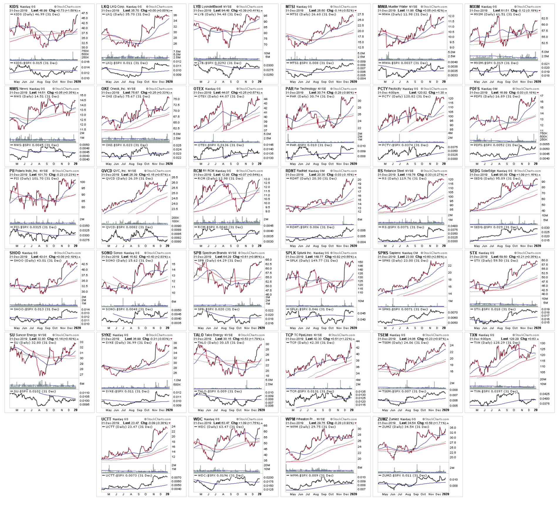 My new weekly scan looks for stocks that are consolidating within 5% of their 52 week highs and are not more than 2x the 52 week ATR above a rising 10 week MA. The list is pretty big so I'll break it up into a few posts in the blog section to show the charts. But here's the refined list of the ones I think look interesting going into the new year: