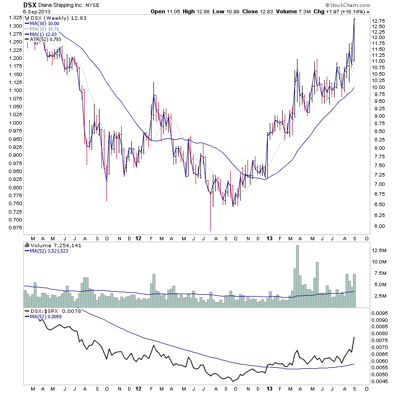 (2013-09-07, 10:01 PM)theory6453 Wrote: I went hunting for some quality Stage 1 or 2 setups today and landed in the Marine Transportation group which appears to have some life in it. I had recently bought BALT @ $4.74 so I knew that the Industrials sector was at least in a 2B and the Marine Transport group looked to be in a solid Stage 2.