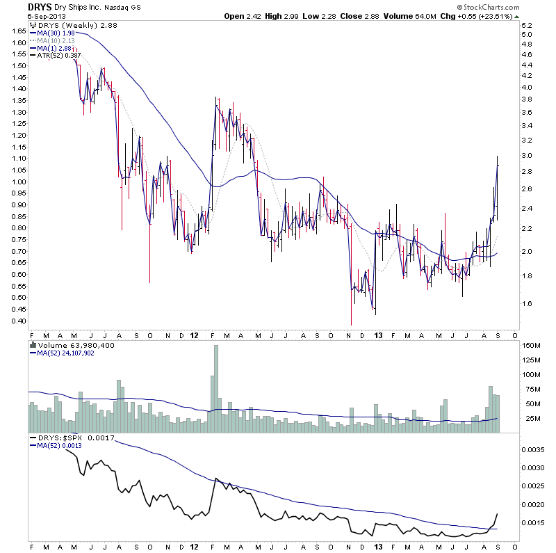To carry on from the previous post attached are a number of other stocks in the Marine Transportation sector that are interesting for the method. I've included a few of the strongest stocks from the sector that are well into their Stage 2 advances DSX, NM, SB and STNG. DRYS is in Stage 2A and SHIP has a seen a big volume increase the last few weeks and is in Stage 1B imo.