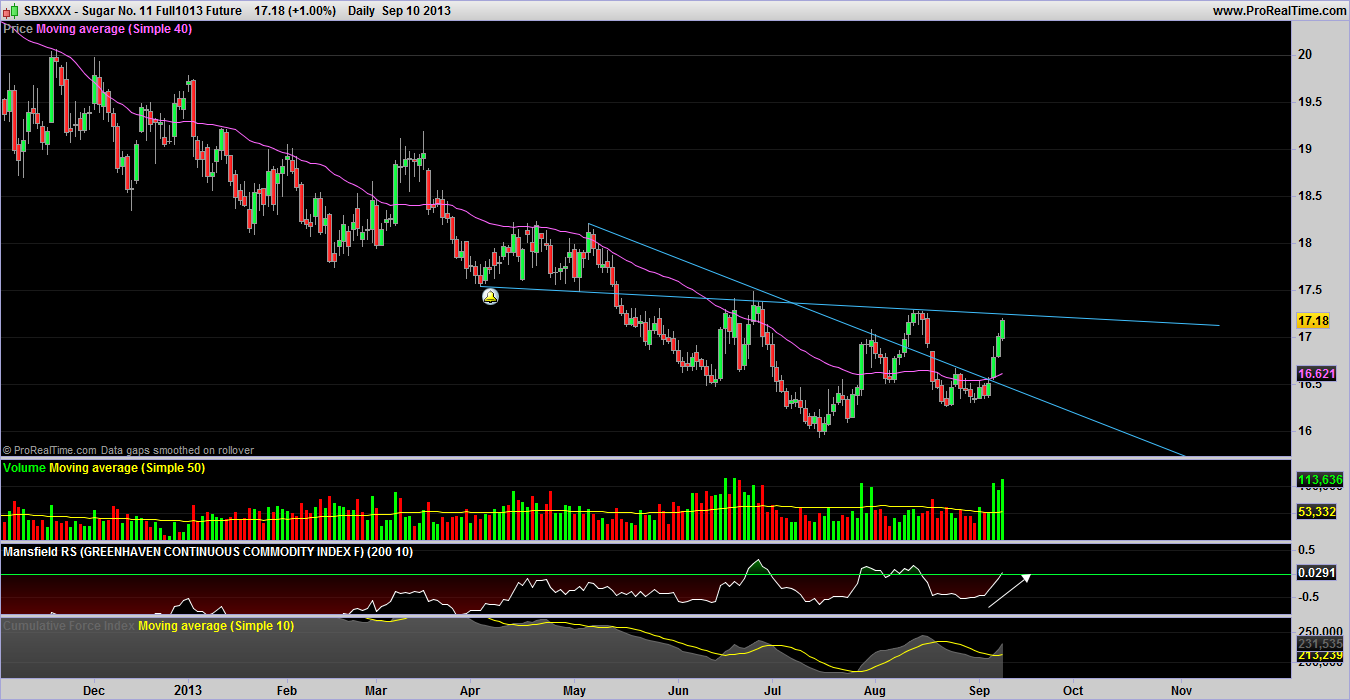 Just to follow up on the conversation about sugar started in post 173 (the weekly chart can be viewed there and in 174). Look for sugar to break out into stage 2A.
