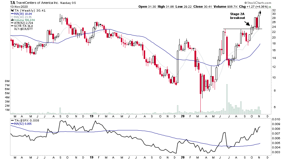 There's notable Relative Strength in the Travel & Tourism group (7th and up +40 places in the last month, to move into the top ten) with multiple stocks moving into the Stage 2 advancing phase and strong relative volume coming into the larger names of $EXPE & $BKNG as they broke out this week