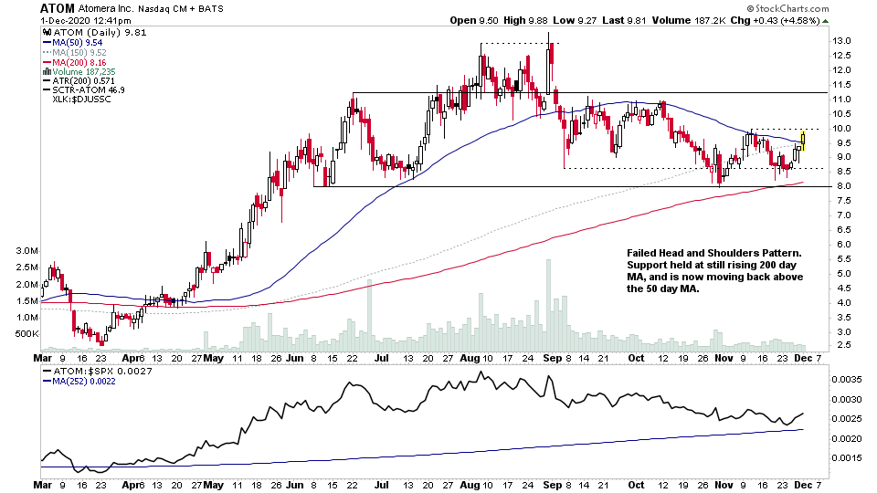 $ATOM Failed Head and Shoulders Pattern. Support held at still rising 200 day MA, and is now moving back above the 50 day MA.