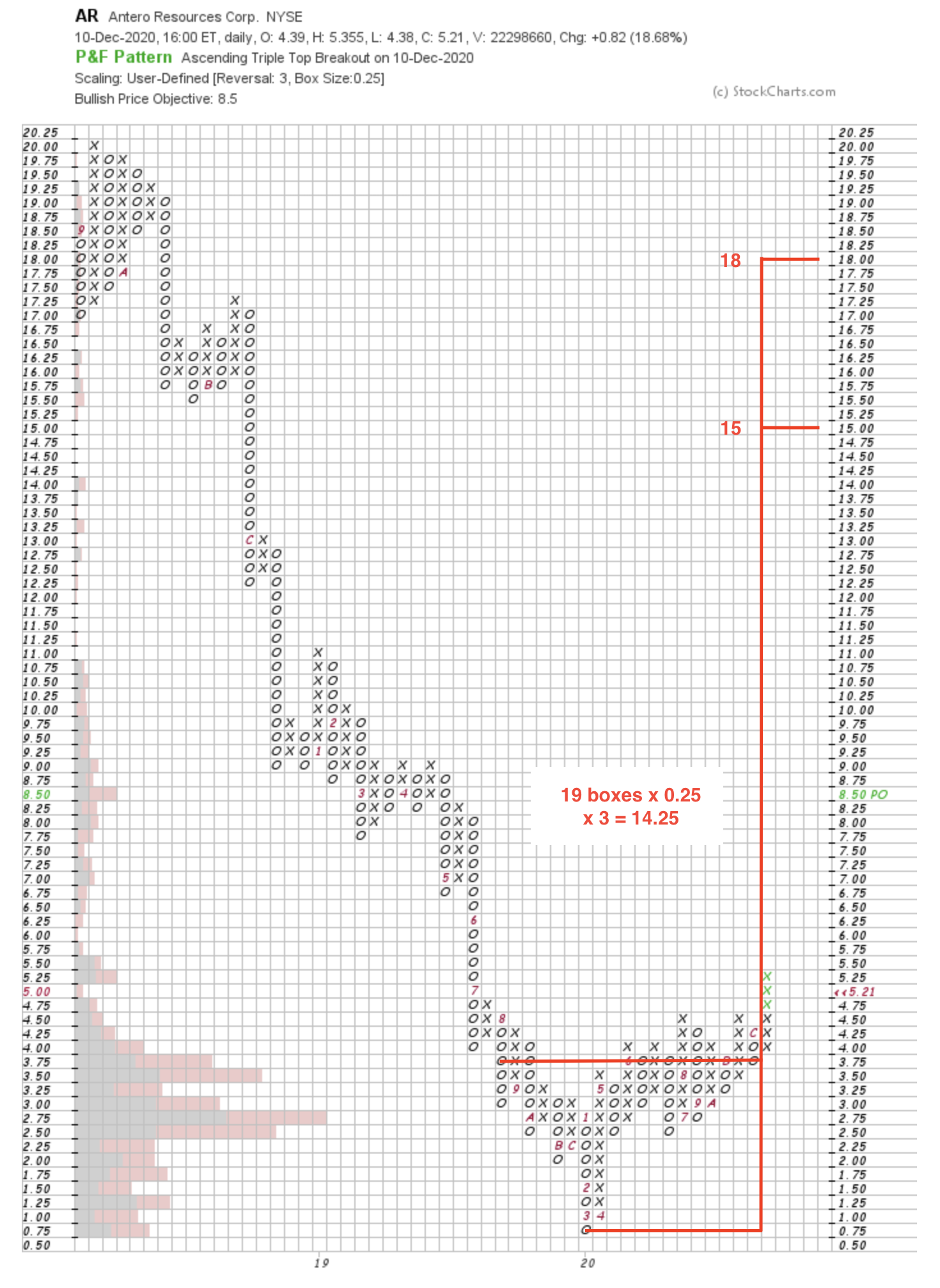 $AR another energy stock attempting to move into early Stage 2A this week from a large base, which means a big horizontal P&F price projection, which suggests it could eventually reach the 15-18 range again during it's Stage 2 advance.
