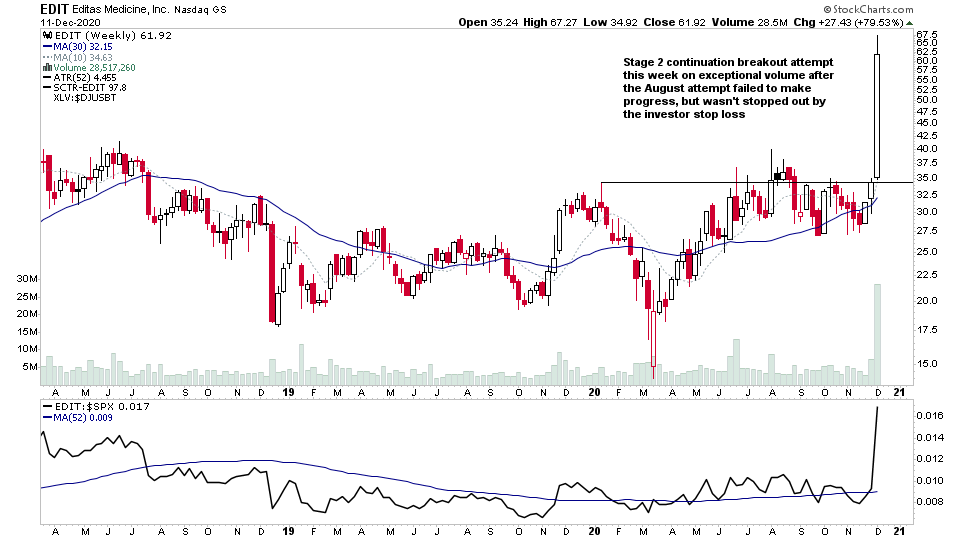 $EDIT Stage 2 continuation breakout attempt this week on exceptional volume after the August attempt failed to make progress, but wasn't stopped out by the investor stop loss