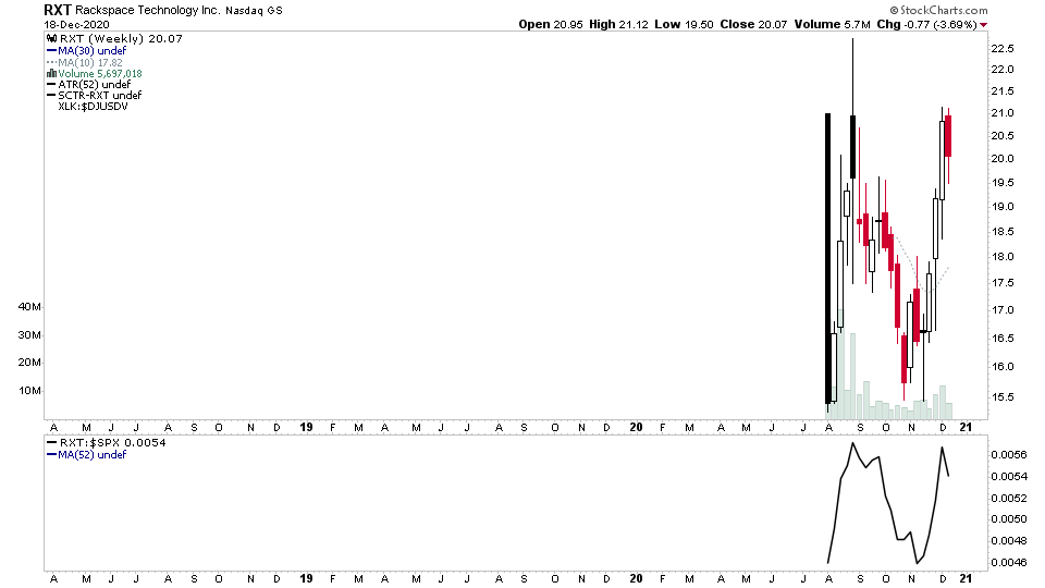(2020-12-15, 06:03 PM)isatrader Wrote: $RXT starting to make the pullback I was watching for following its strong rally off the lows of the developing base. Ideally I'm looking for it to drop back to the 18-19 liquidity range and for supply to diminish as it declines for a potential entry point