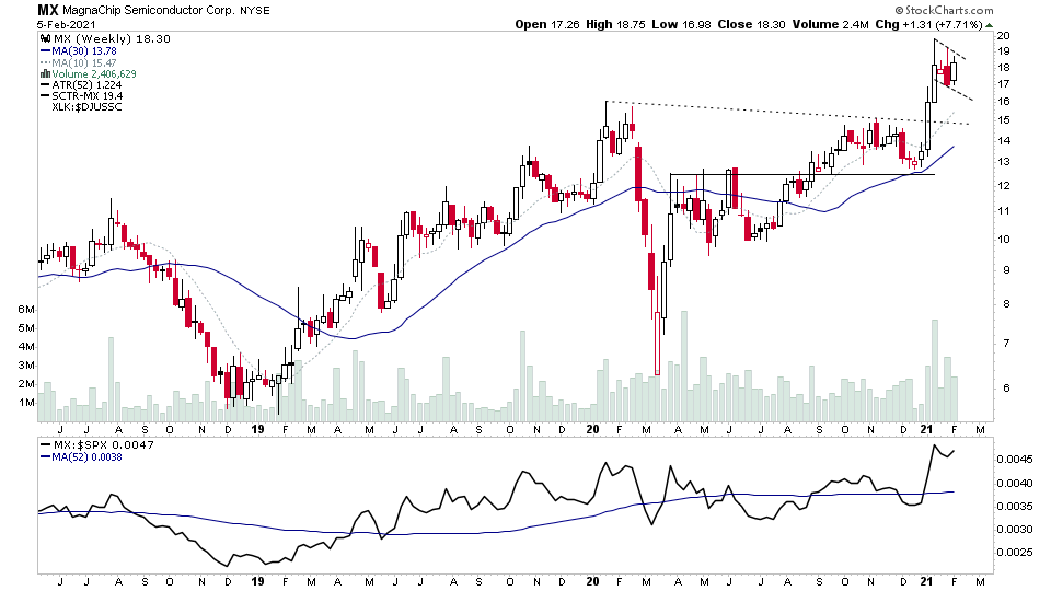 $MX came in the watchlist on the 2nd. Closed the week well with a developing flag pattern near the highs