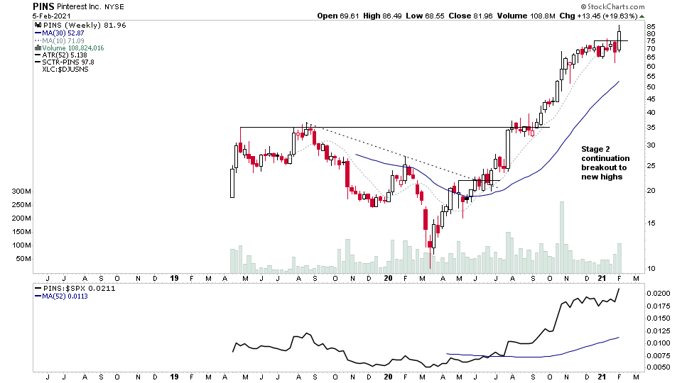 $PINS Another one from the 2nd Feb watchlist, made a Stage 2 continuation breakout to new highs this week.