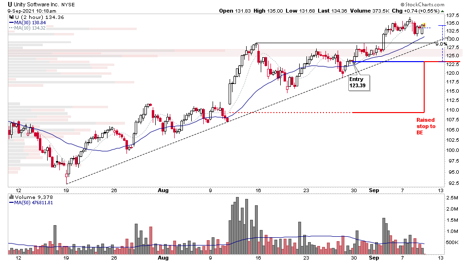 I'm doing some position management with todays progress. So have raised my stop loss on my position trade in $U up to cost price, as there are multiple areas of support above to justify the raise.
