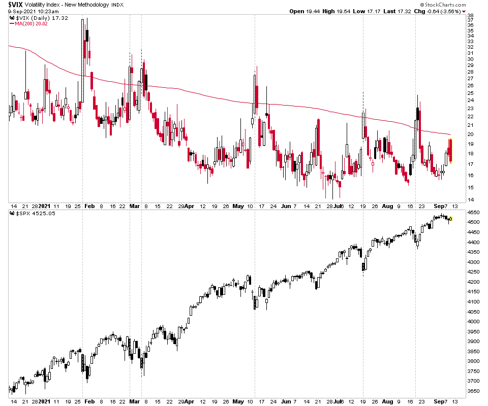 $VIX closed above the 200 day MA, which has been close (within a day or two) to a swing low on the majority of times it's occurred this year.