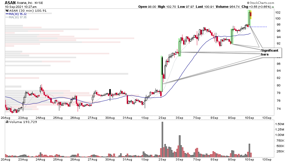 $ASAN over the $100 level in the opening 30 mins. May need to do some further trade management on this today. i.e a stop loss raise or potentially some trimming if it can't hold the 100 level into the close.