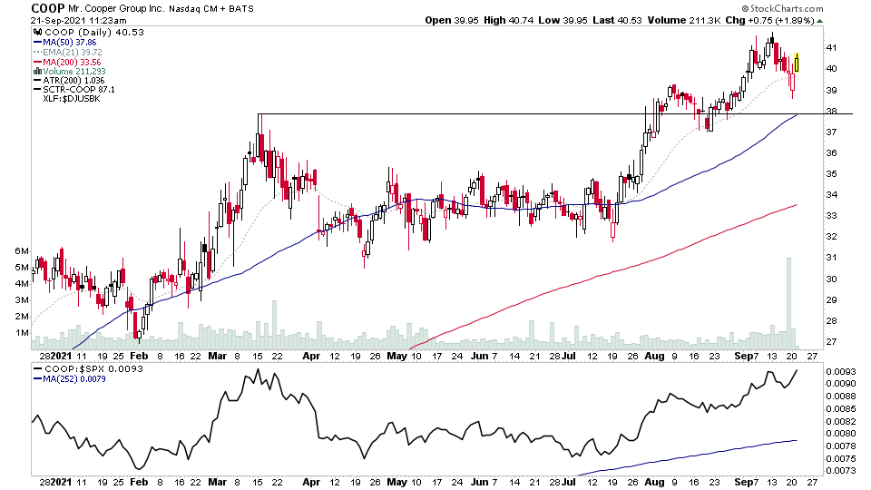 $COOP from the watchlist reacting well to yesterdays dip below its 21 day EMA, with RS making a new high ahead of the price action