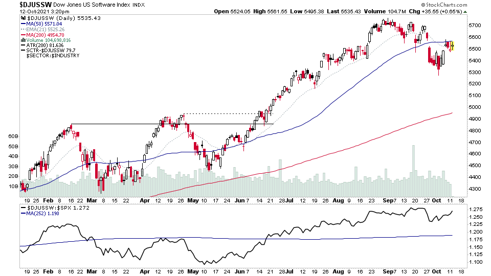 Software group with strong RS since the recent swing low. RS line approaching the highs ahead of the price action.
