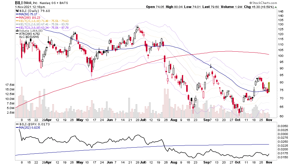 $BILI on the road to recovery with its first pullback to the 50 day MA and rebound since breaking back above in October. Starting to develop a base structure with contraction in volatility.