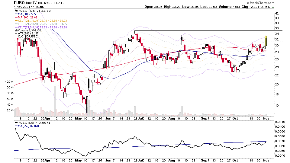 FUBO from the watchlist potentially in Phase D of the base structure