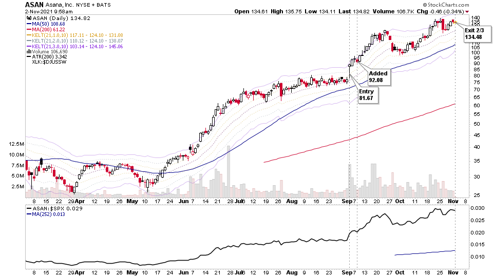 Trimmed 2/3 of the $ASAN position for a 64.66% gain on the partial which takes ASAN back down to an 8% position size in the short term account now.