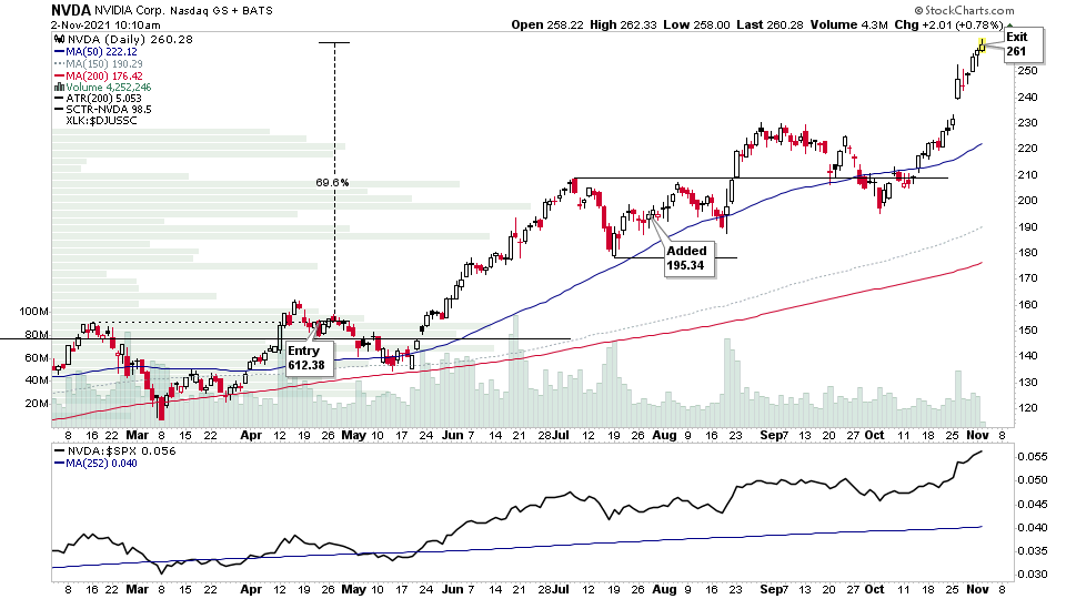Exited the full position in $NVDA in my pension account at 261, which after fees was +68.99% on the original position and +32.40% on the add on entry, and secures a +10.8% account gain for the pension account.