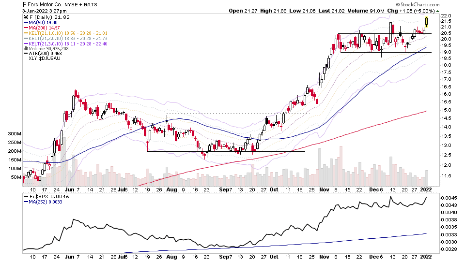 Traditional auto stocks following through strongly again today with a Stage 2 breakout to new highs in Toyota $TM and new highs for $F and $GM
