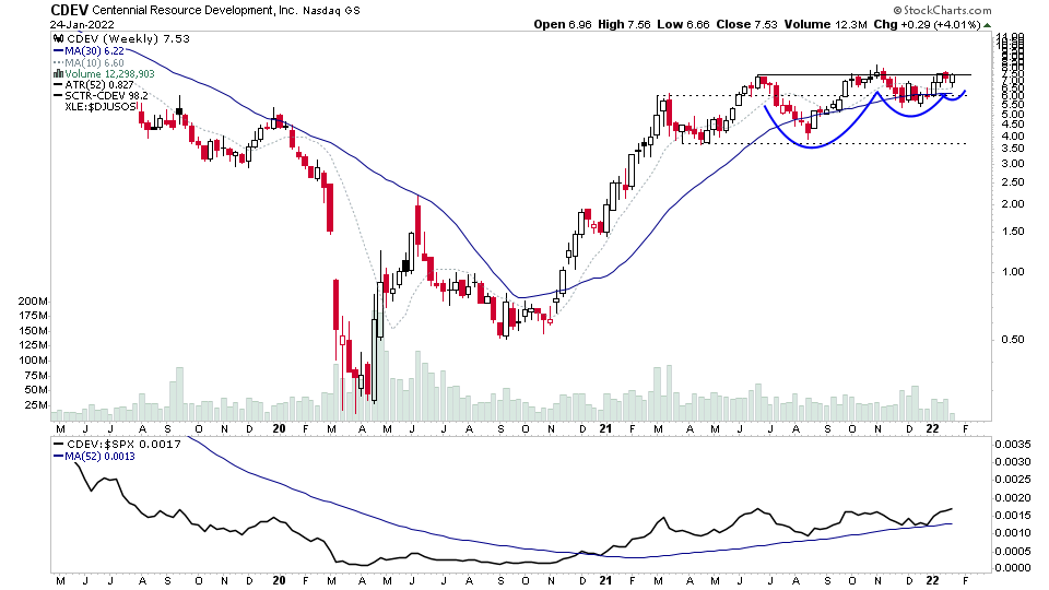 $CDEV from tonights watchlist caught my eye on the weekly chart with a Volatility Contraction Pattern (VCP)* developing with VCP Footprint of 31W 48/14 3T