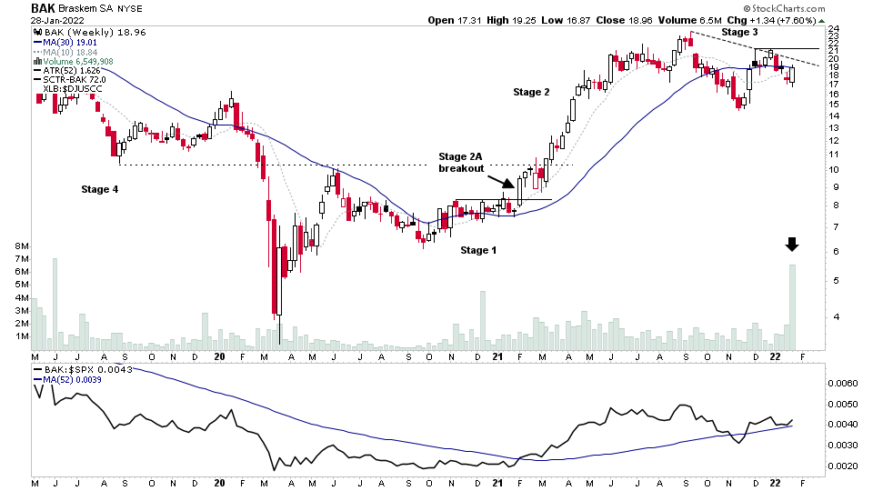 $BAK a new one for the watchlist following its largest weekly volume for the last few years this week as it attempts a reversal in Stage 3.