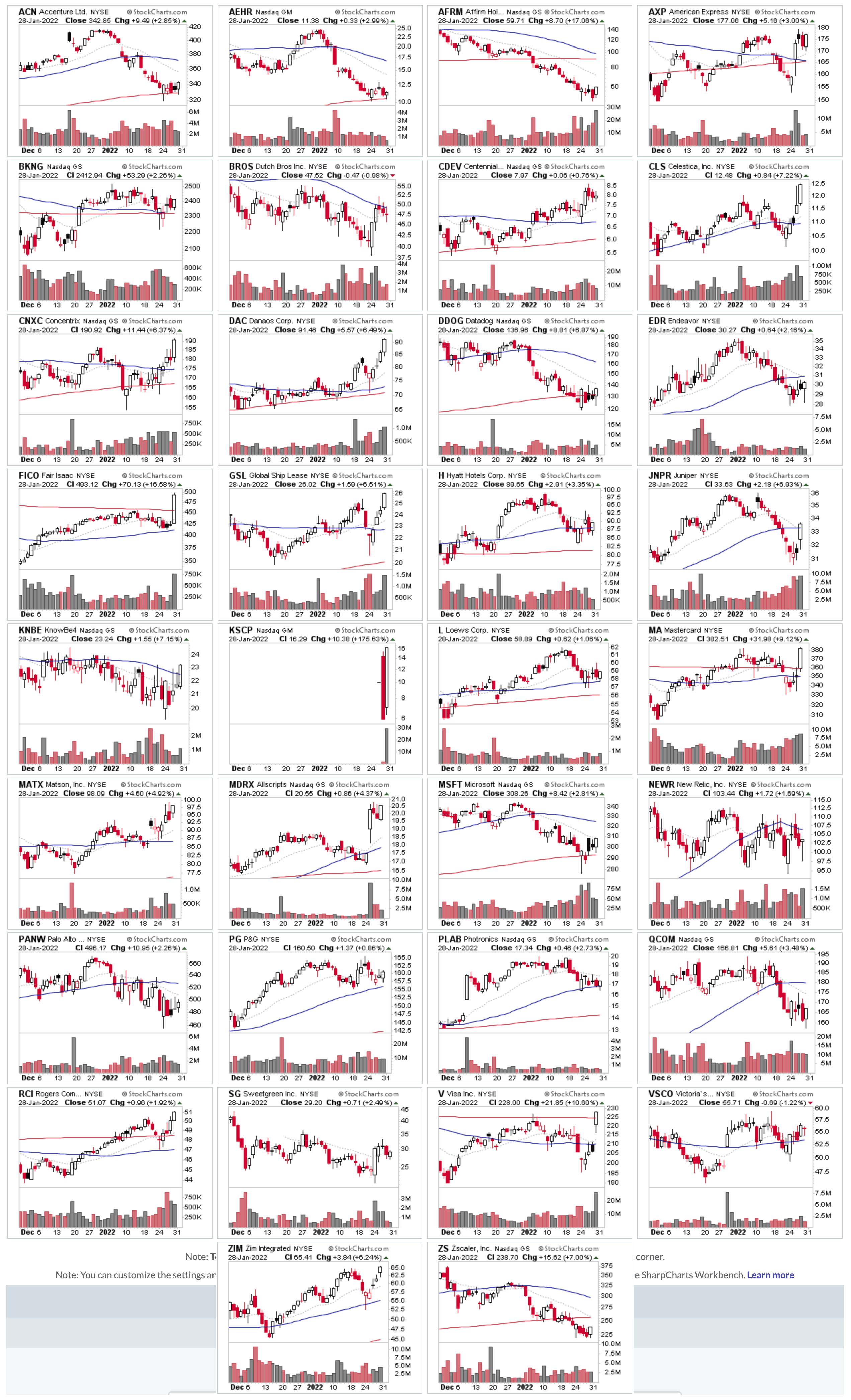 ACN, AEHR, AFRM, AXP, BKNG, BROS, CDEV, CLS, CNXC, DAC, DDOG, EDR, FICO, GSL, H, JNPR, KNBE, KSCP, L, MA, MATX, MDRX, MSFT, NEWR, PANW, PG, PLAB, QCOM, RCI, SG, V, VSCO, ZIM, ZS,