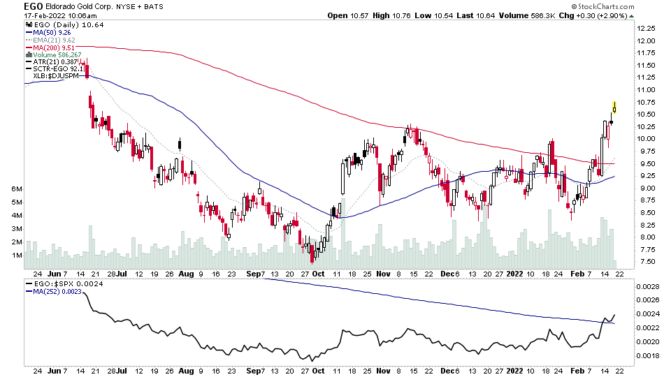 Gold miners also moving again today, + $GOLD gapping to new near term highs on earnings results