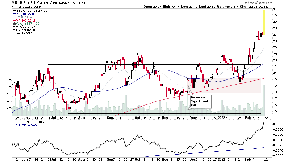 $SBLK reported earnings yesterday, and I wanted to highlight it is a really good example. I've included my original thoughts on it back from 25th Nov when it had a Reversal Significant Bar on heavy volume, and so you can see how the structure develop since then and breakout move.